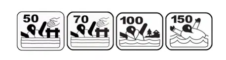 Lifejacket label buoyancy levels icons